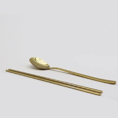 Cuchara dorada y par de palillos dorados